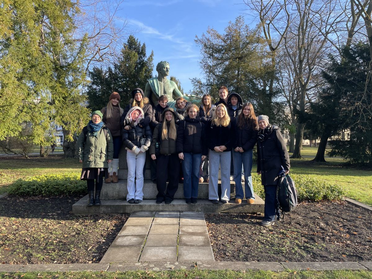 Bei klarem, sonnigen, wenn auch etwas kühlen Wetter haben sich diejenigen Schüler:innen der Leistungskurse Deutsch des dritten Semesters, die der bisherigen Erkältungswelle tapfer trotzen, am Donnerstag, dem 27.11.2025, nach Frankfurt/ Oder aufgemacht, um Heinrich von Kleists Geburtsstadt zu besuchen.