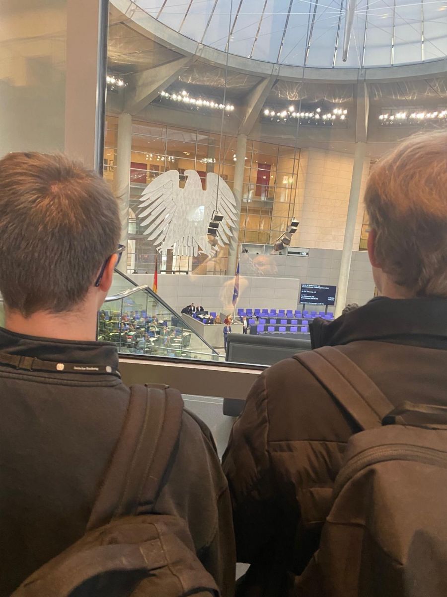 Heute durfte der Politik Kurs von Frau Brandt der Generaldebatte im Bundestag beiwohnen. Leider mussten wir die Plenarsitzung bereits nach relativ kurzer Zeit verlassen. Sehr gern hätten wir uns noch weitere Redebeiträge angehört und die Diskussionskultur im Bundestag beobachtet.