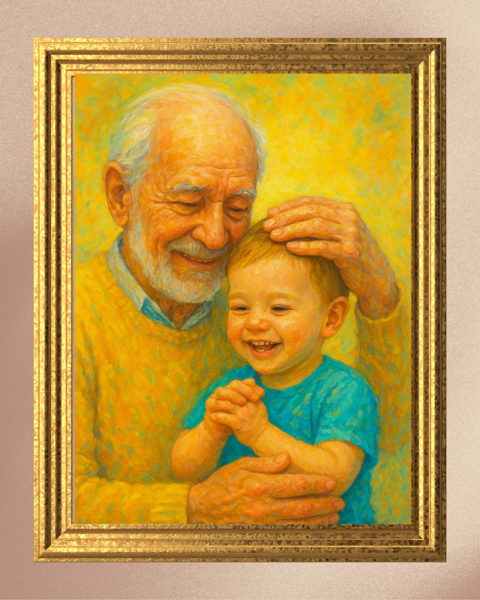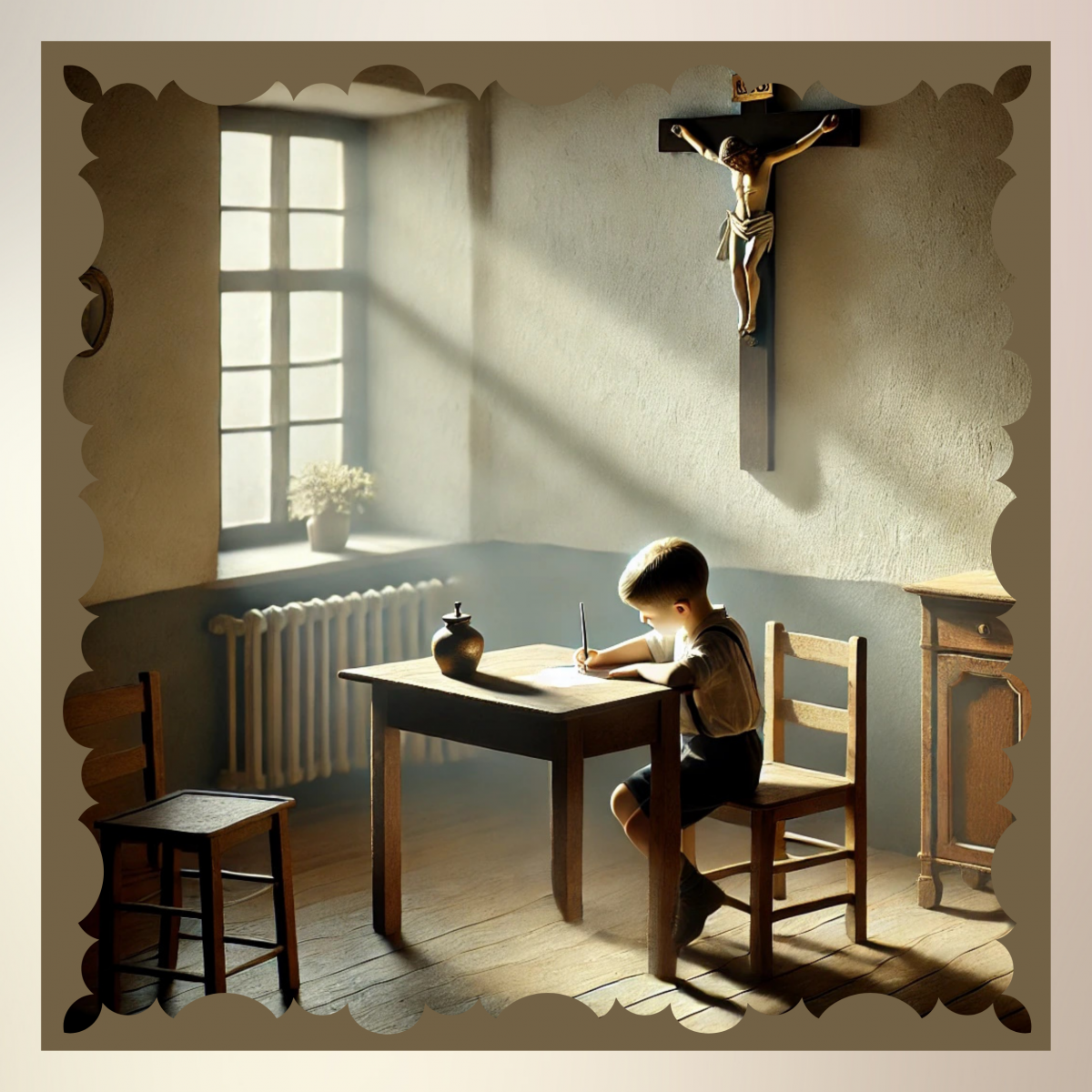 Plötzlich zupfte er seinem Vater am Ärmel: „Papa, auf diesem Bild fehlt etwas – die Haustür hat gar keine Klinke. Wie soll der Frieden denn da reinkommen?“
