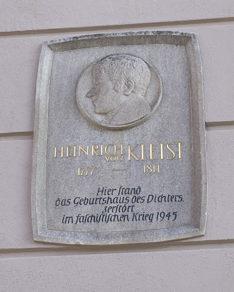 Christina Dalchau nahm die Besucher:innen aus Berlin am Bahnhof im Empfang und auf dem gemeinsamen Weg zur einzigen Kleist-Museum der Welt gelang es ihr, einen Einblick in die Lebenswelten des jungen Kleists nahezubringen. Wie sah der Blick aus seinem Elternhaus aus? Wo trafen sich die lokalen Adligen für kulturelle und gesellige Abende? Wo traf Kleist seine erste Liebe? Aber auch schon bei der Stadtführung wurde deutlich, dass es wenige gegenständliche Quellen von Heinrich von Kleists gibt, man sich letztlich diesen Autor insbesondere nur über Texte und Briefe, die er selbst geschrieben hat oder in denen er beschrieben wurde, annähern kann.