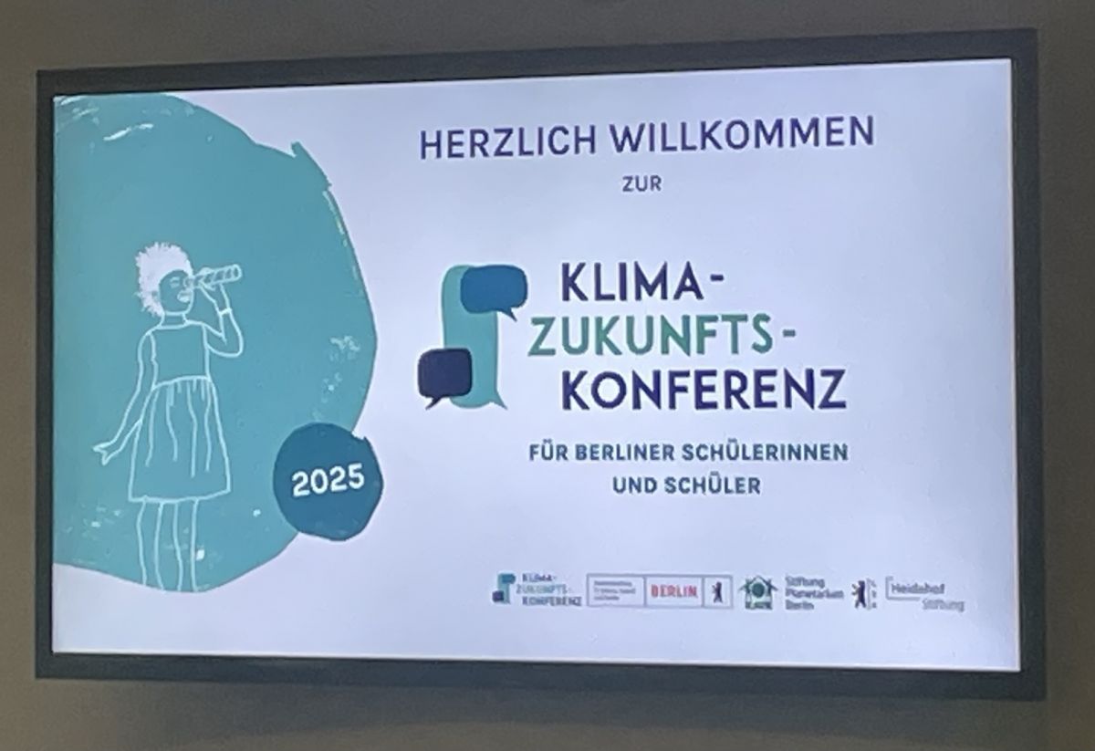 Die Schüler:innen der Klima-AG haben dieses Jahr das erste Mal an der Klimazukunftskonferenz im Zeiss-Großplanetarium teilgenommen, zu der seit 2019 der Senat und die Stiftung Planetarium Berlin einladen. Auch dieses Jahr folgten 300 Schüler:innen der weiterführenden Schule der Einladung, um sich zu informieren und um bei einem ereignisreichen Tag in den Austausch zu kommen.