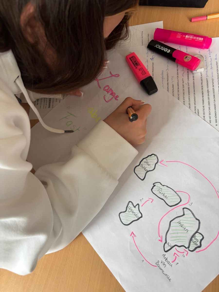 Ein zentrales Thema war, welche Auswirkungen unser Kleidungskonsum hat. Ziel war es, ein Bewusstsein für Nachhaltigkeit zu entwickeln und zu verstehen, wie unsere Kaufentscheidungen Umwelt und Menschen weltweit beeinflussen.
